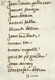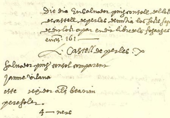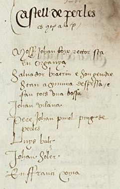![]() Fogatge 1497 Perles "Salvador Biatriu e son gendre stan a comuna despessa e fan tots una bossa" |