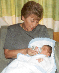 Amb el seu net Jaume. Foto feta al 1999 a l'Hospital General de Catalunya.